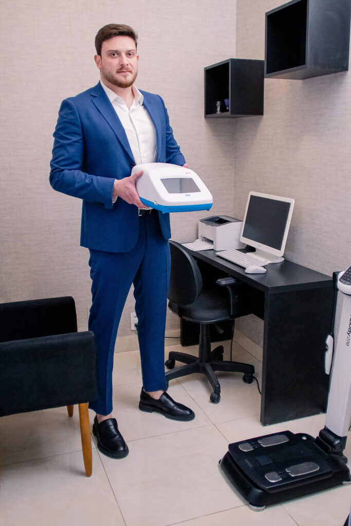 A Bioimpedância Avançada revela como seu corpo realmente está por dentro. Com esse exame, identificamos com precisão a porcentagem de gordura, massa muscular, retenção de líquidos e até seu gasto calórico diário.
